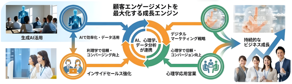 | 事業内容 | 生成AI研修/コンサルティング/開発 ・インサイドセールスの新規立ち上げコンサルティング ・営業力強化 ・デジタルマーケティング研修 ・コンサルティング | 導入して終わりではなく「定着」を支援します |